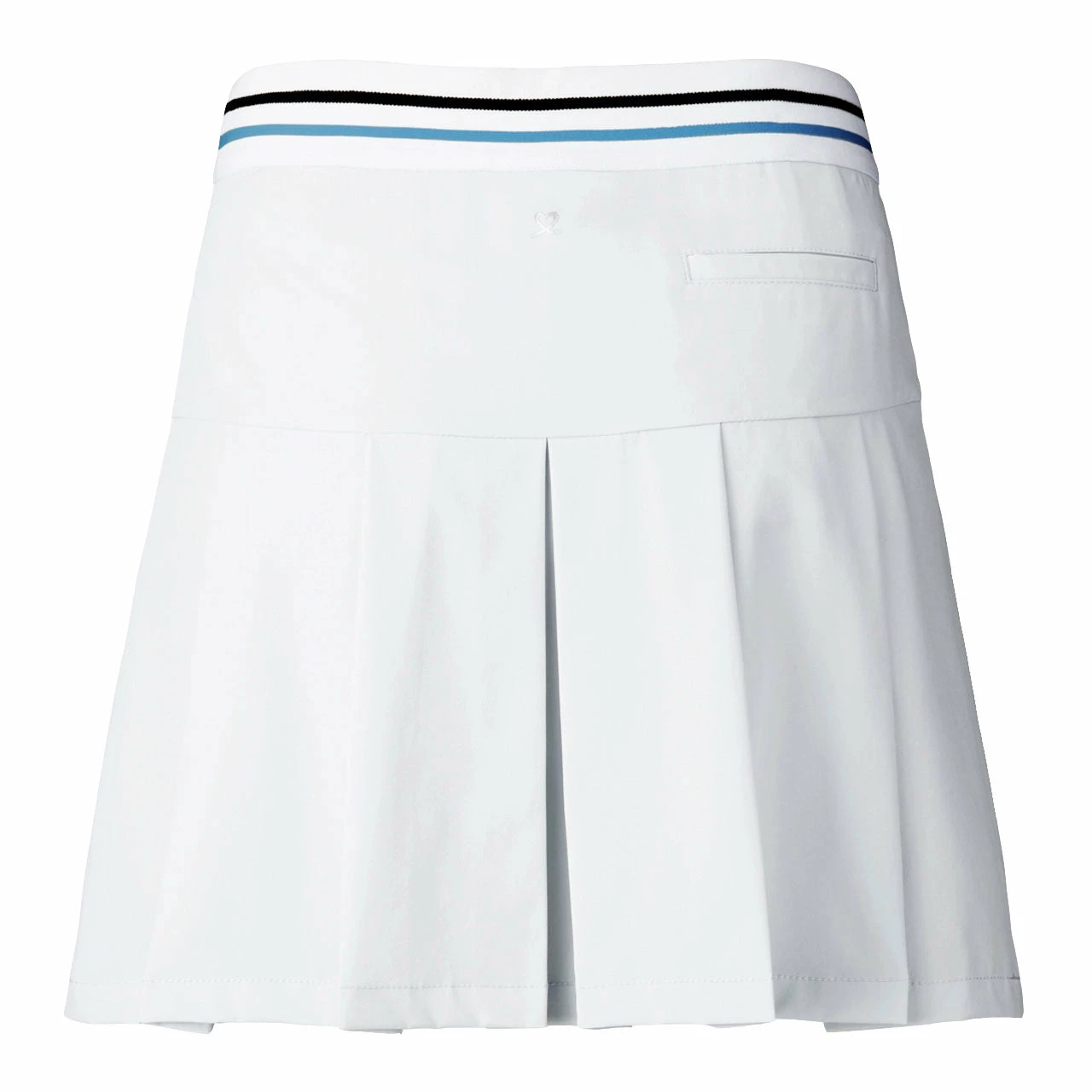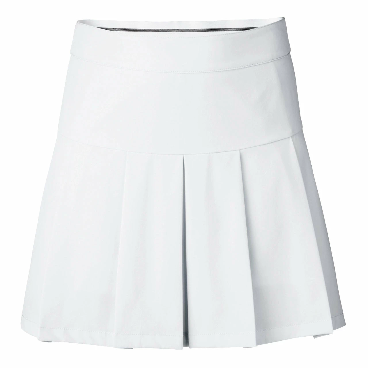 The Daily Sports Angela 18 inch Womens Golf Skort has that beautiful, classic look you will love when heading out for a round of golf. Wind and water-resistant properties allow you to take this skort on any vacation or weekend event. A single back pocket provides a place for a tee or scorecard and the 18 inch length boasts a modest and sophisticated look.