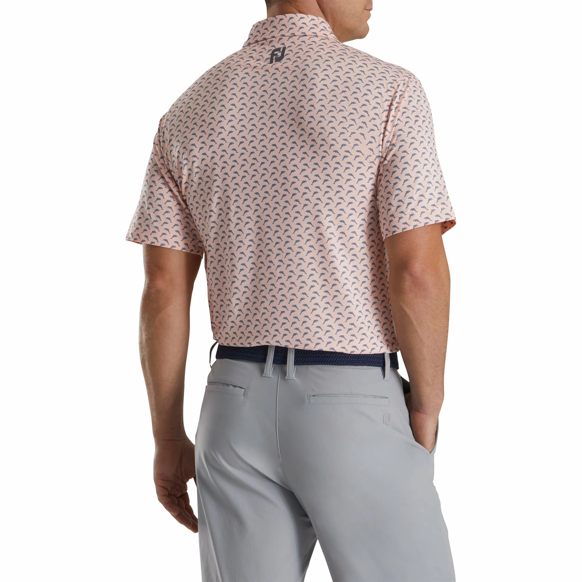 Add some high-quality performance wear to your wardrobe with the FootJoy Lisle Leaping Dolphins Print Golf Polo. The Leaping Dolphins polo is built with the FootJoy Exclusive ProDry fabrication that will quickly wick away moisture to keep you dry and comfortable throughout the round and the anti-microbial finish will prevent odor build-up to keep you smelling fresh. There are double stitched seams for added durability and the dolphin print combines with an easy to care fabric that will not wrinkle or shrink to keep you looking good on and off the golf course.