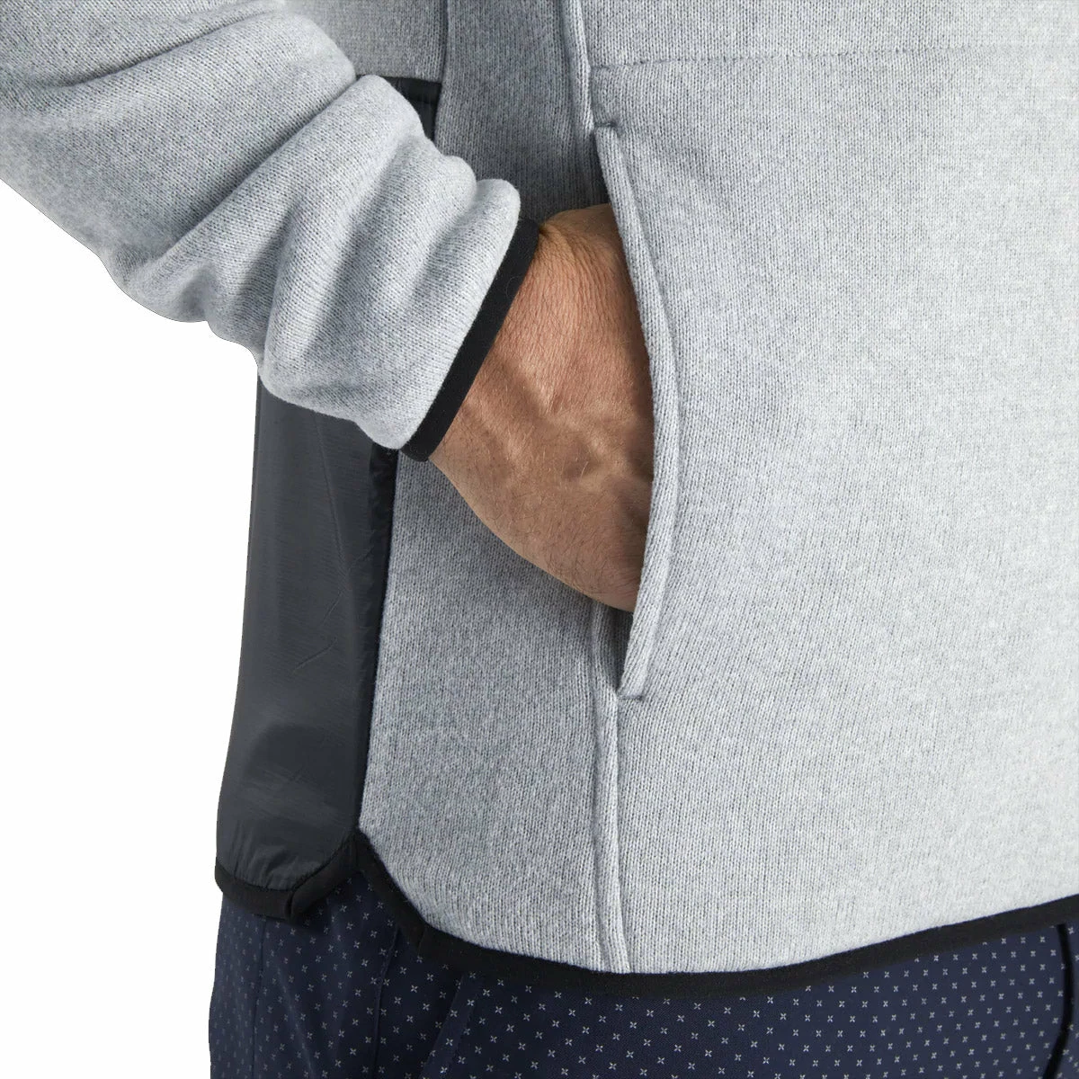 Make every round playable regardless of weather with the FootJoy Sweater Fleece 1/2 Zip. This versatile piece allows golfers to adapt to changing weather conditions. The four-way stretch shell will keep your core warm while providing a free range of motion throughout the golf swing. The engineered woven panels provide abrasion protection on your shoulders and lower back for durability.