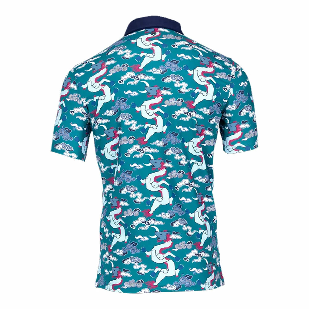 Add some unique styling to your golf wardrobe with the Greyson Wolf Slayer Mens Golf Polo. Constructed with a poly-blended fabric, this polo offers the utmost comfort and breathability while being antimicrobial and moisture wicking. Striking colors and a wolf-inspired motif create an eye-catching design that is bound to turn some heads. It is finished with a contrast collar and three button placket.