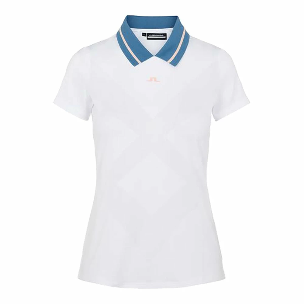 For a light and airy choice on a hot and sunny day, choose the J. Lindeberg Nilo Womens Golf Polo. This polo features a jacquard mesh panel at the front which creates a flattering silhouette and provides extra ventilation. The fabric also has technical stretch for maximum freedom of movement and moisture wicking properties to keep you cool under pressure.
