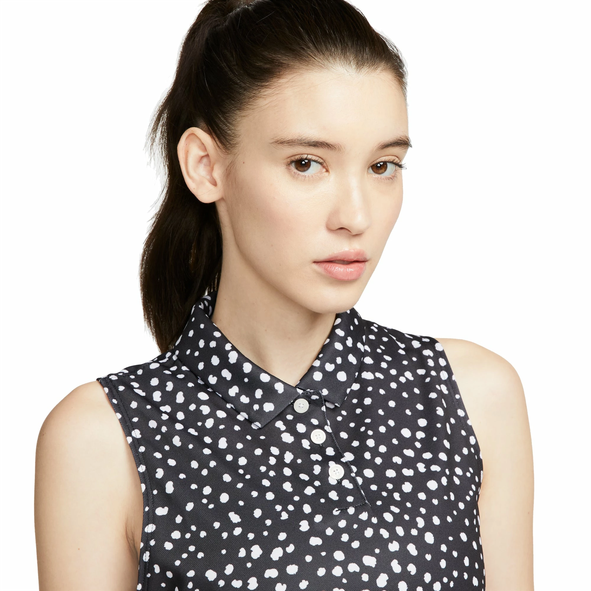 Hit the links in comfort and style with the Nike Dri-FIT Victory Printed Golf Polo. This polo is built with Nike Dri-FIT technology that pulls sweat from the body to keep you dry and comfortable throughout the round. The breathable knit fabric offers plenty of stretch allowing for freedom of movement through the whole golf swing. A modified racerback will cover a traditional bra and the subtle animal print will have you looking stylish on and off the course.
