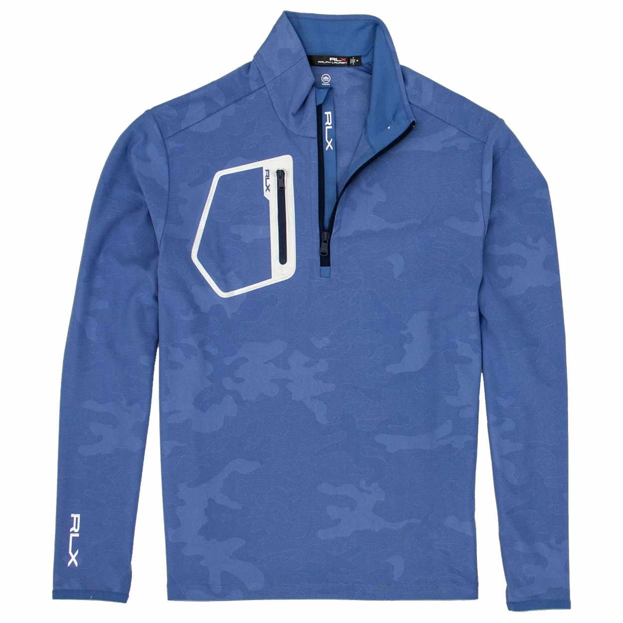 Add comfort and style to your cool weather rounds with the RLX Lux Jacquard Jersey Golf 1/2 Zip. The Lux is a lightweight option that features a moisture wicking jersey material that pulls sweat from the body to keep you dry and comfortable. This half zip provides ample amount of stretch that moves with you to ensure comfort with every swing. There is a performance neck construction and stretch binding at the cuffs for added comfort and the RLX chest pocket is a great placing for storing a scorecard.