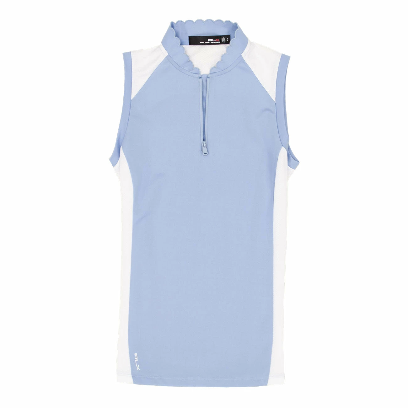 The Womens Mesh Mix Sleeveless Polo by RLX Ralph Lauren really elevates that classic skort and polo look out on the green. This sleeveless top is made from a breathable polyester and elastane blend, and paired with moisture-wicking mesh side panels and back yoke for added airflow, perfect for 18 holes in the heat of the day. The slim fit Mesh Mix Sleeveless Polo is rounded out with a beautiful scalloped baseball collar, quarter-zip placket and a straight hemline for a clean cut presentation.