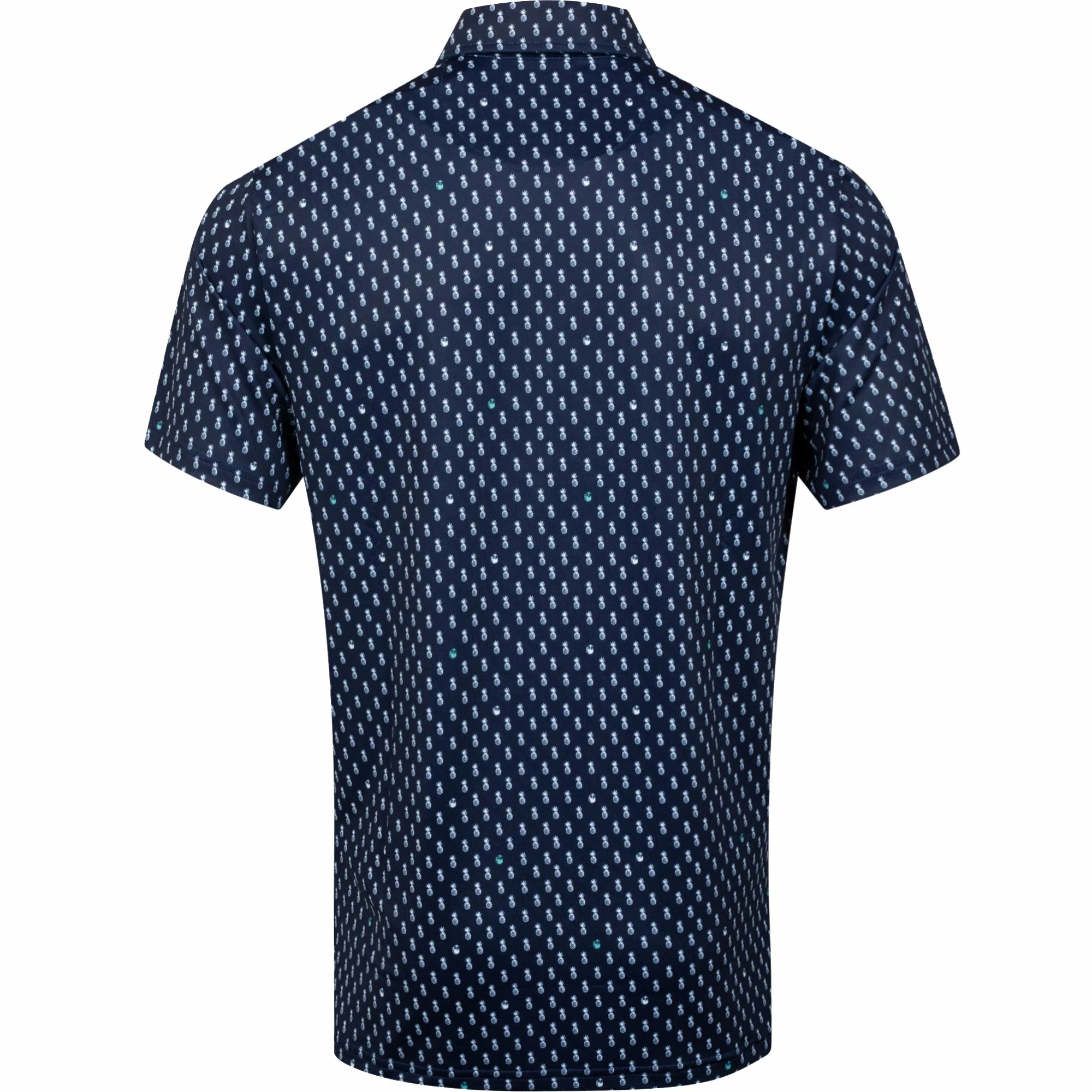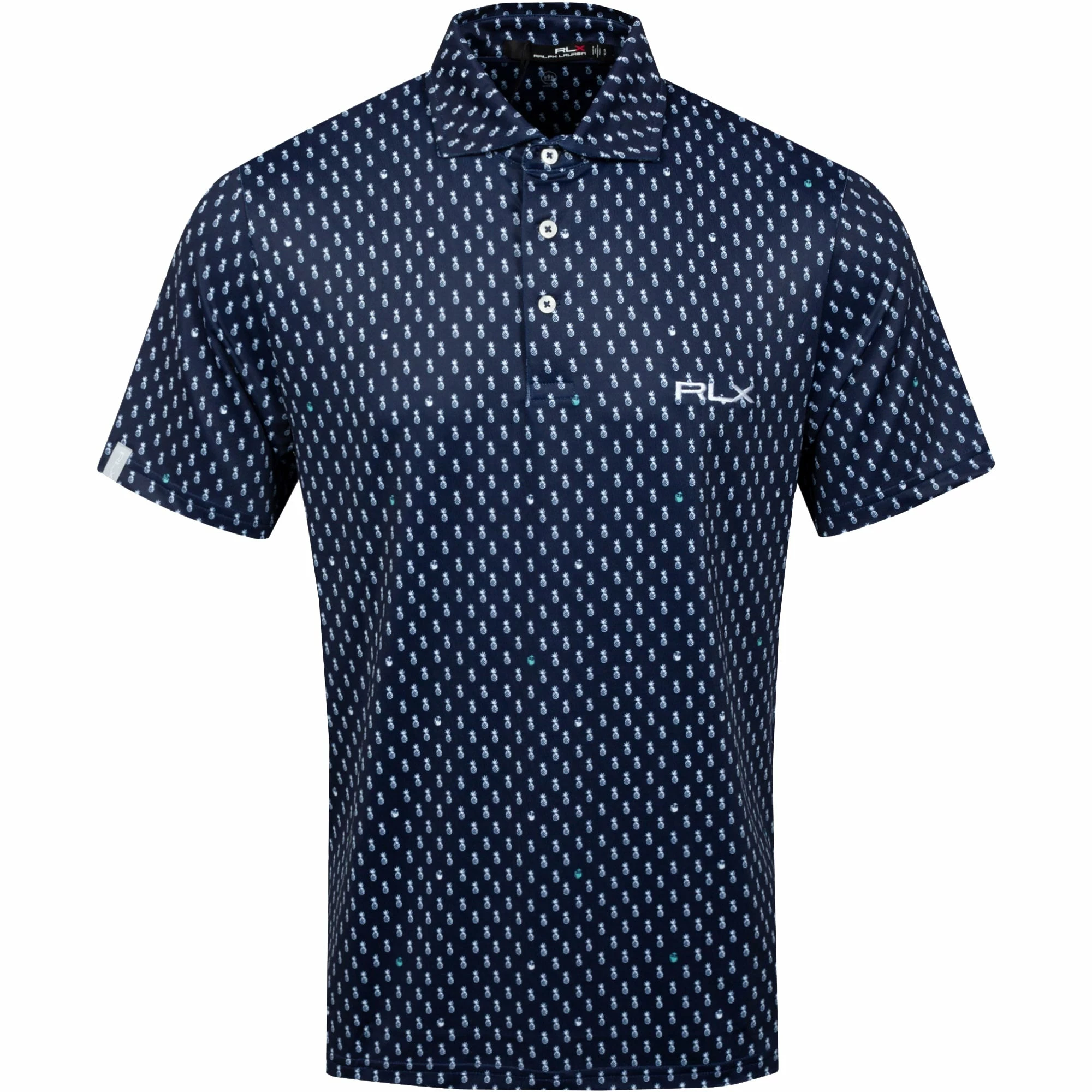 The RLX Printed Lightweight Airflow Golf Polo is a surplus-inspired shirt built from lightweight stretch jersey that not only wicks away moisture but also provides UPF 50 protection from UV rays. It features a classic fit, three button placket, spread collar with concealed button, tennis tail, and RLX logo at the right sleeve.