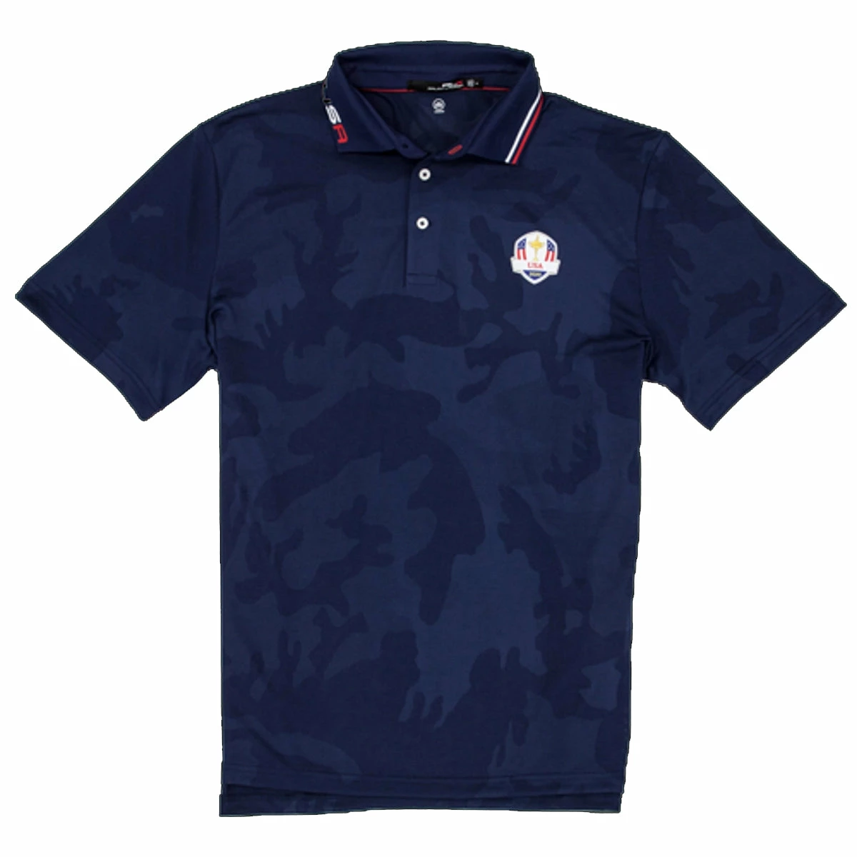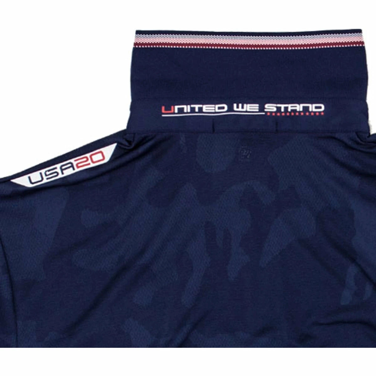 Look like the 2020 US Ryder Cup team and show off your American pride with the RLX Ryder Cup Mesh Camo Jacquard Golf Polo. This camo print polo is built with a lightweight stretch jersey that moves with you for 18 holes of comfort and its also moisture wicking to keep you dry and comfortable throughout the round. There are U.S. inspired quotes and logos all over that combine with the camo print to have you looking stylish and like a member of Team USA.