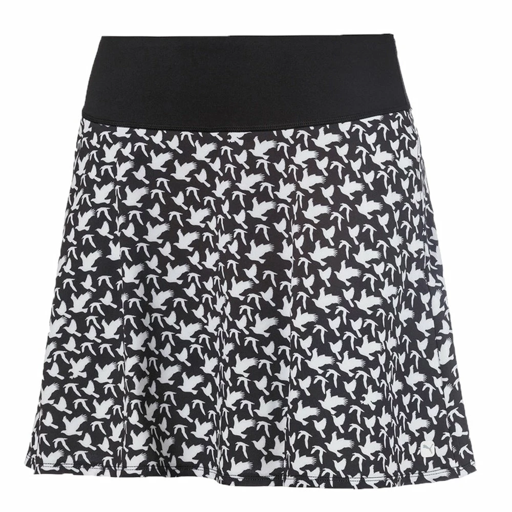 The Puma PWRSHAPE Flight 16 inch Womens Golf Skort features a lightweight, woven birdie print fabric and ultra flattering PWRSHAPE waistband. This skort is moisture wicking, has two side pockets, and an attached inner brief with gripper tape to keep it in place.