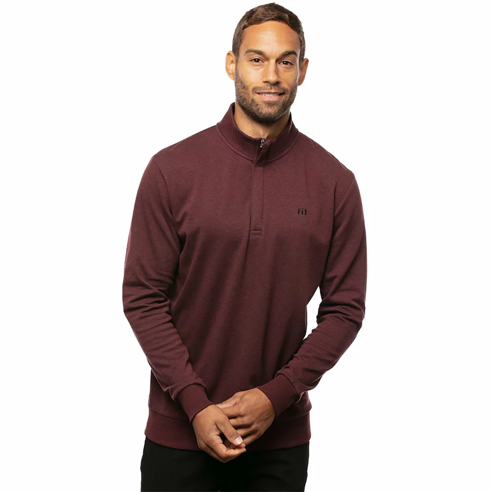 Add simple styling to your golf wardrobe with the TravisMathew Cloud Golf 1/4 Zip. This top is built with an ultra soft French Terry fabric that fits comfortably on the body and combines with a four-way stretch that moves as you move for total comfort. The 1/4 zip allows you to control the coverage as you like and that TravisMathew logo at the left chest adds a subtle touch of style that will have you looking good on and off the course.